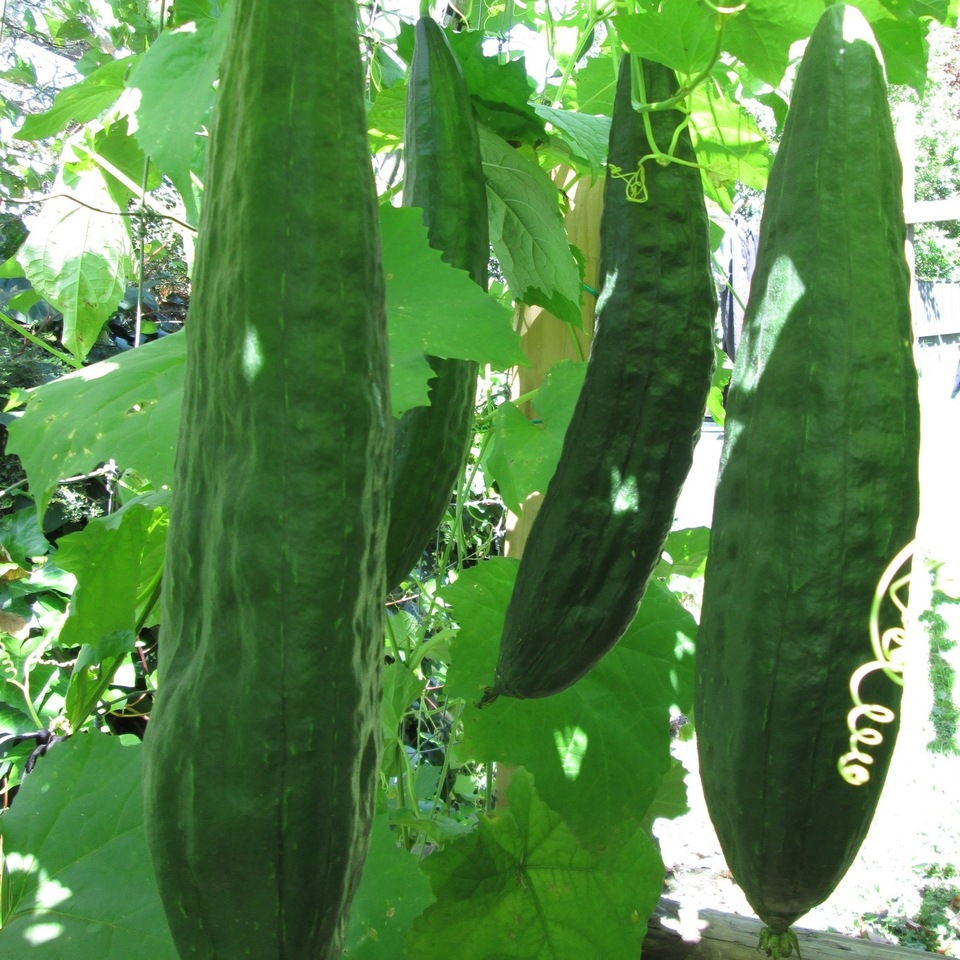 The large marrow looking fruit is very heavy so we use a solid structure to hold them up and make sure they grow nice and straight for our customers. The vines take up a lot of space and at peak growing time you can see the daily growth in the vine, this also means a lot of tying to ensure the tendrils can latch onto the structure. At the end of the season the plant starts to take all the nutrients and moisture back out of the heavy loofah and they start to dry off. When they become light and the skins begin to brown we harvest them. Harvesting can take up to two to three months depending on the autumn season.